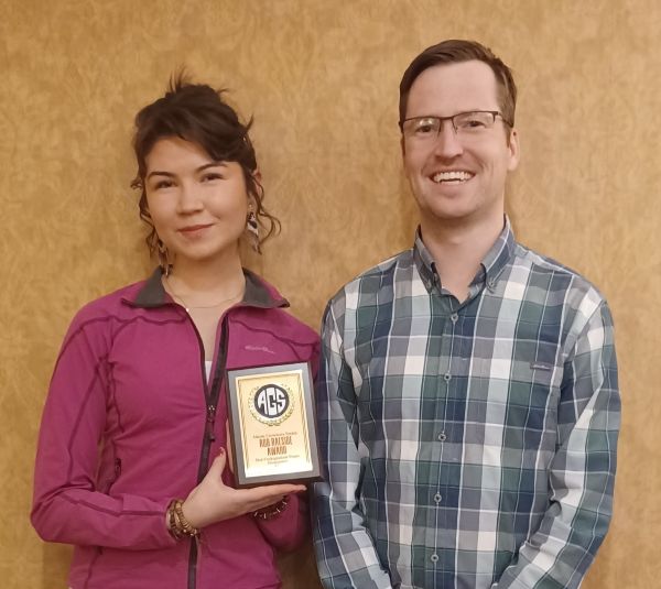 Kayla Youngchief won the Rob Raeside Award for the Best Undergraduate Student Poster for “Seeing inside basal Windsor Group microbial reefs: serial-slab-based 3D reconstruction” with co-authors from Cape Breton University Graydon MacIsaac, Zailynne Durant, and Edward (Ted) Matheson (pictured here).