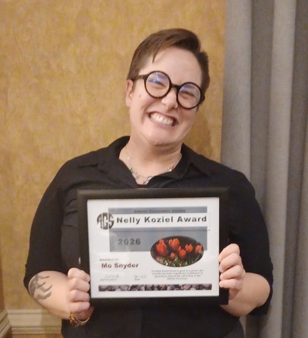 Dr. Mo Snyder was awarded the Nelly Koziel Award. The Nelly Koziel Award is given to a person who recently has made a significant contribution to geoscience, beyond the call of duty, in the Atlantic Provinces. Dr. Snyder’s award recognized their work in creating a Field Safety Guidebook for geoscience and their contributions towards creating a culture of inclusive and accessible field work in geoscience.